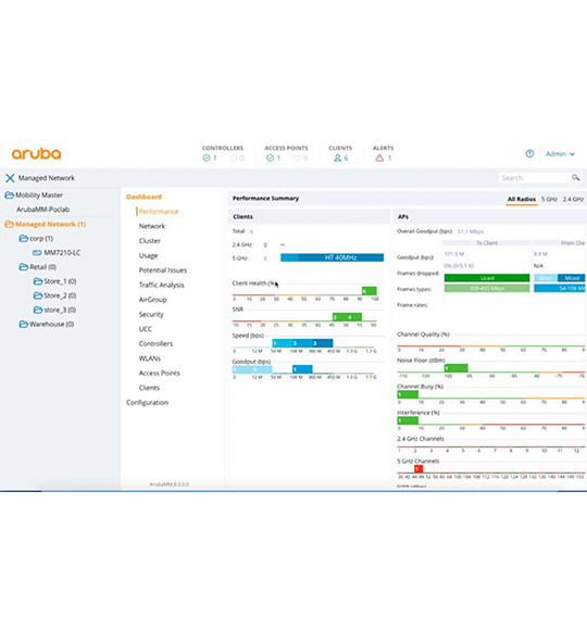 Der Aruba Virtual Mobility Controller (VMC) wird als virtuelle Maschine implementiert und unter ArubaOS 8 ausgeführt. Er bietet sich dank der flexiblen Implementierung als Alternative für Hardware Mobility Controller (72xx und 7xxx) an. Dieser virtuelle Controller überzeugt zudem durch eine große Kapazität und hohe Geschwindigkeiten für BYOD-Lösungen und IEEE 802.11ac-Geräte in Campus-Netzwerken oder Netzwerken in Niederlassungen. Der VMC kann als eigenständige Lösung implementiert oder über den Aruba Mobility Master verwaltet werden. In diesem Fall können bis zu 100.000 Benutzer unterstützt werden. Die Implementierung eines VMC bietet sich für Kunden an, um Betriebskosten zu sparen, da dieser mit anderen VMs eingerichtet werden kann und dieselbe, bereits vorhandene Virtualisierungsinfrastruktur nutzt.
